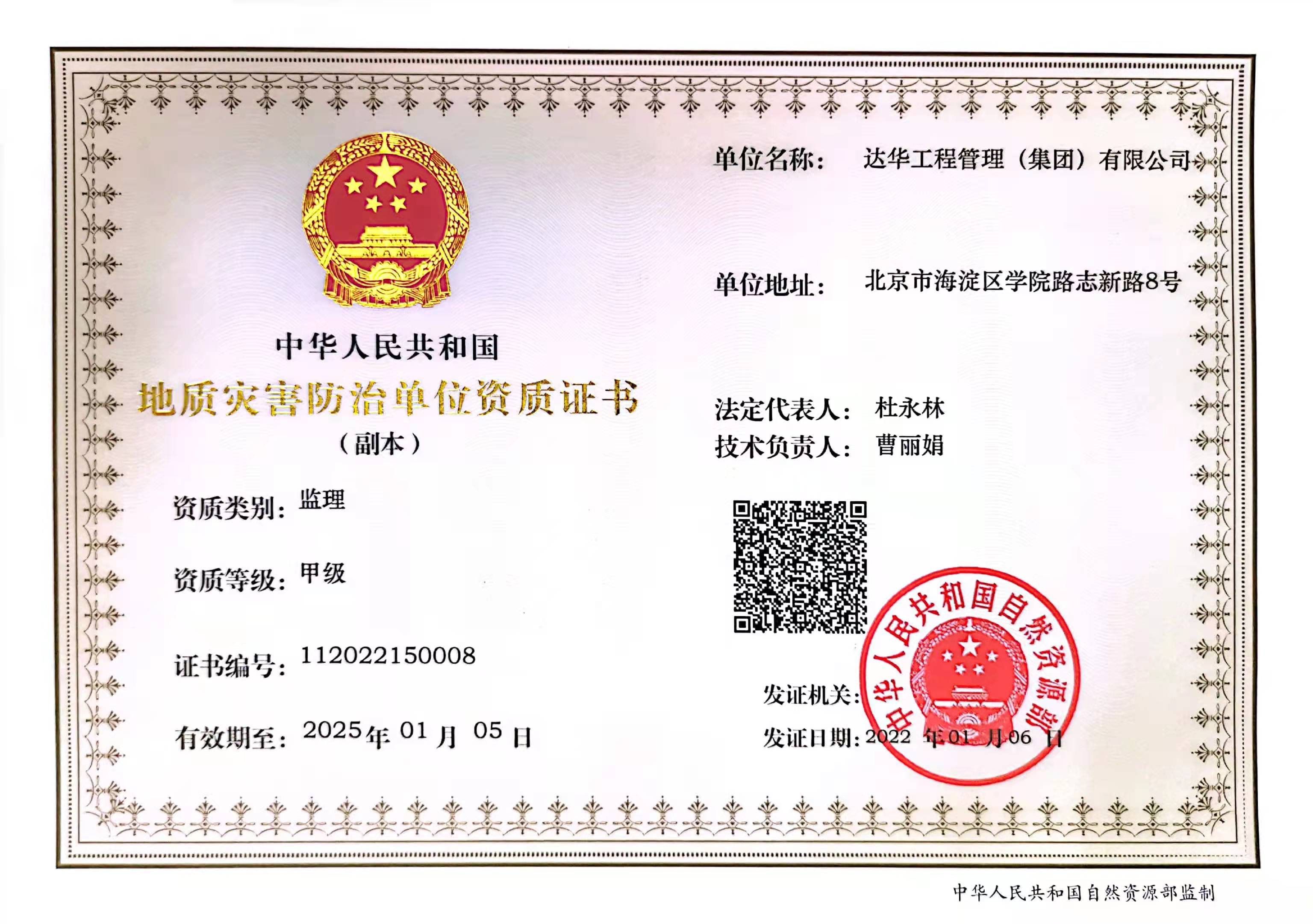- 達華集團榮獲中國自然資源部頒發(fā)的地質(zhì)災(zāi)害… 2022/01/21